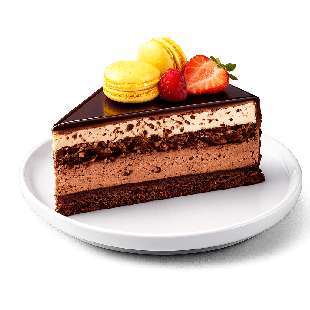 Tort 2 Mousse: blat cacao, mousse ciocolată albă, mousse ciocolată neagră, fulgi de ciocolată