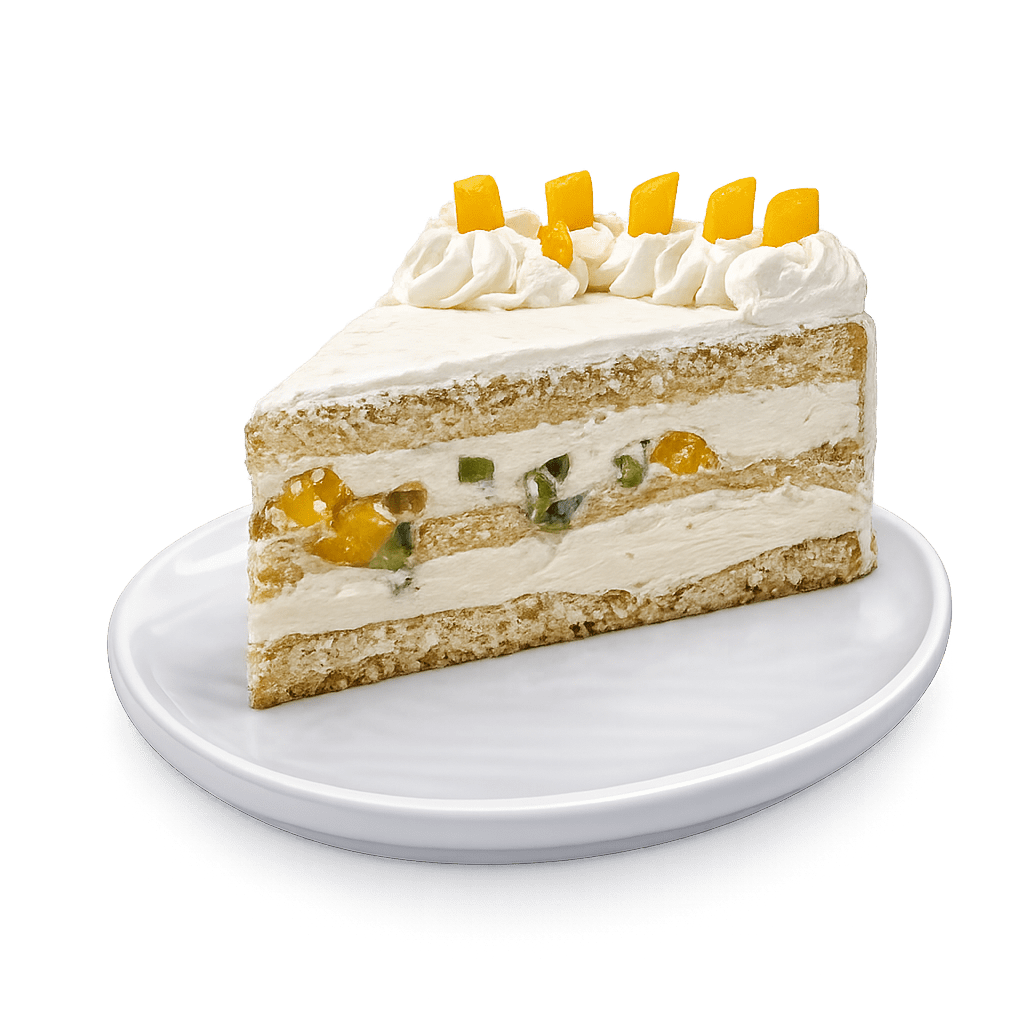 Tort Diplomat: blat alb, cremă diplomat cu fructe – Piersica, Zmeura, Ananas, Kiwi