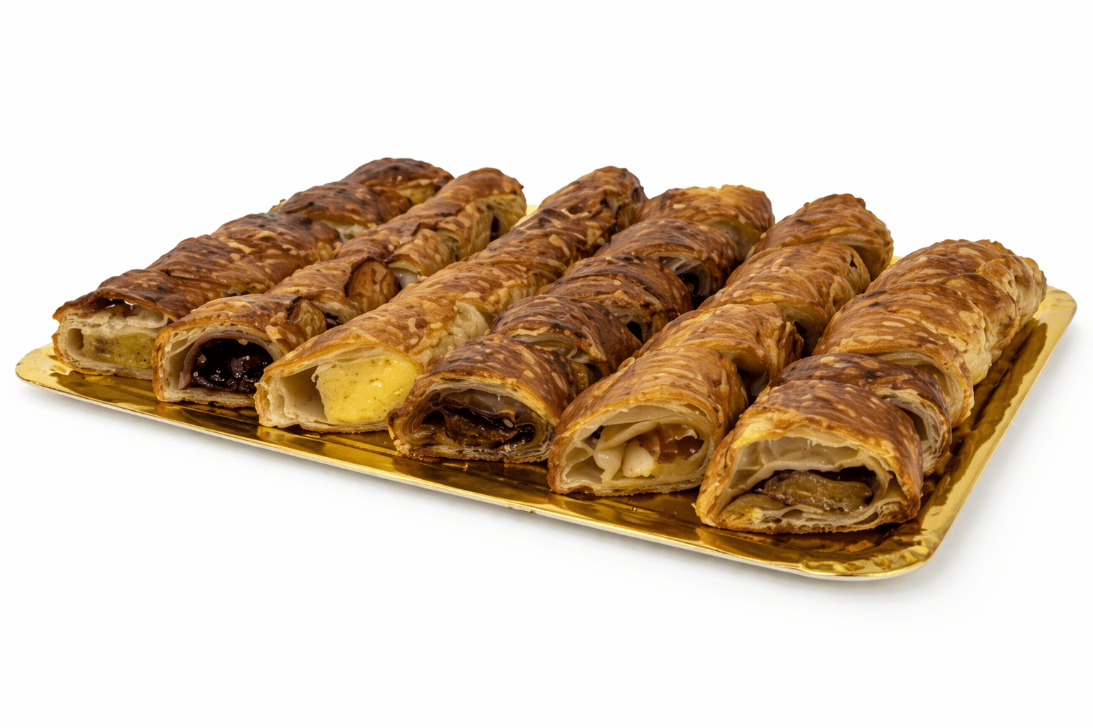 Mini-Strudel măr, Mini-Strudel vișine, Mini-Strudel Vanilie, Mini-Strudel ciocolată, Mini-Strudel Brânză dulce Pret/ buc.